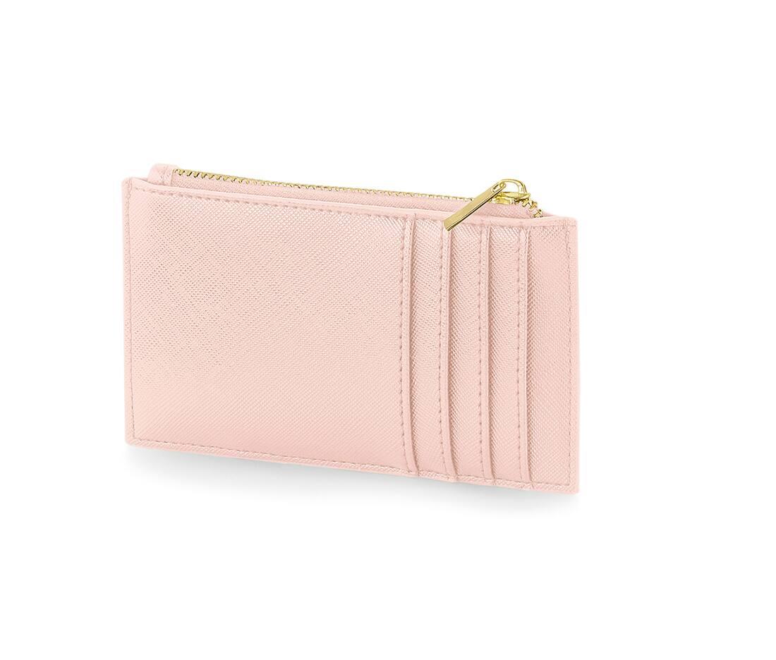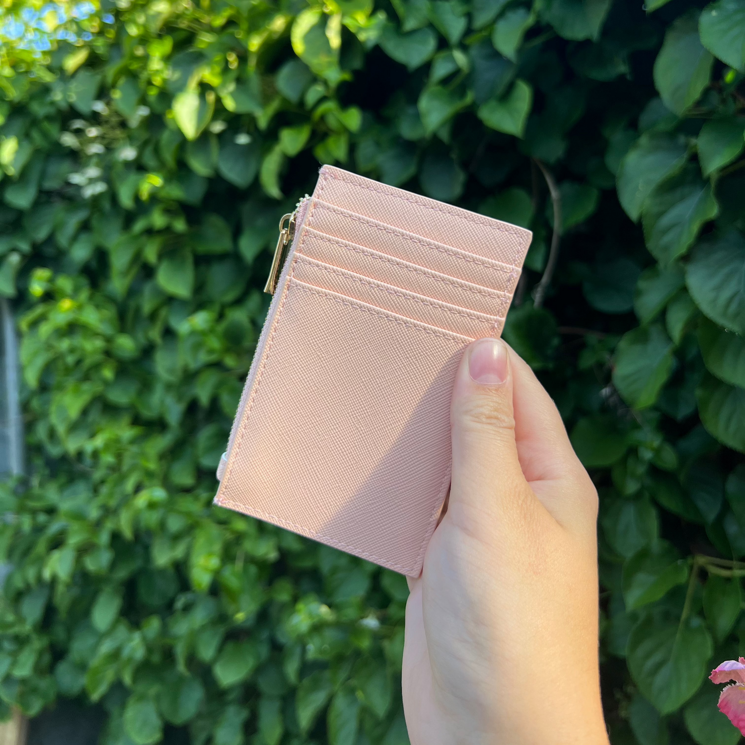 Deze kaarthouder van 12,5 x 7,5 cm is ideaal voor dagelijks gebruik. Op de achterkant kun je je initialen of naam laten bedrukken, waardoor het echt jouw eigen item wordt. De houder heeft vier vakjes die elk 2 à 3 pasjes kunnen bevatten, genoeg ruimte voor je belangrijkste kaarten. Daarnaast is er een ritsvakje waar je contant geld of kleine spullen in kwijt kunt. Door het kleine formaat past hij makkelijk in je tas, broek- of jaszak.